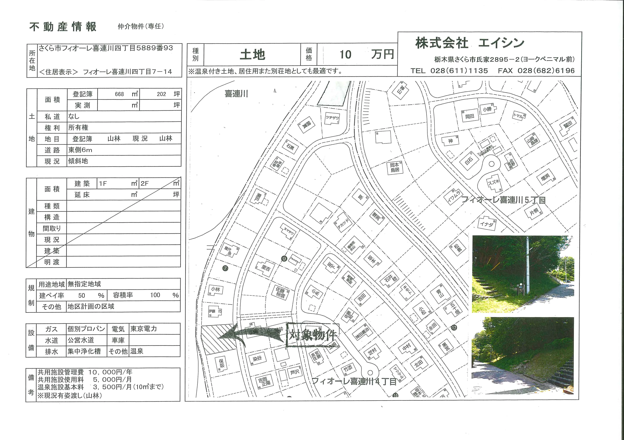 - さくら市フィオーレ喜連川四丁目5889-8、他4筆