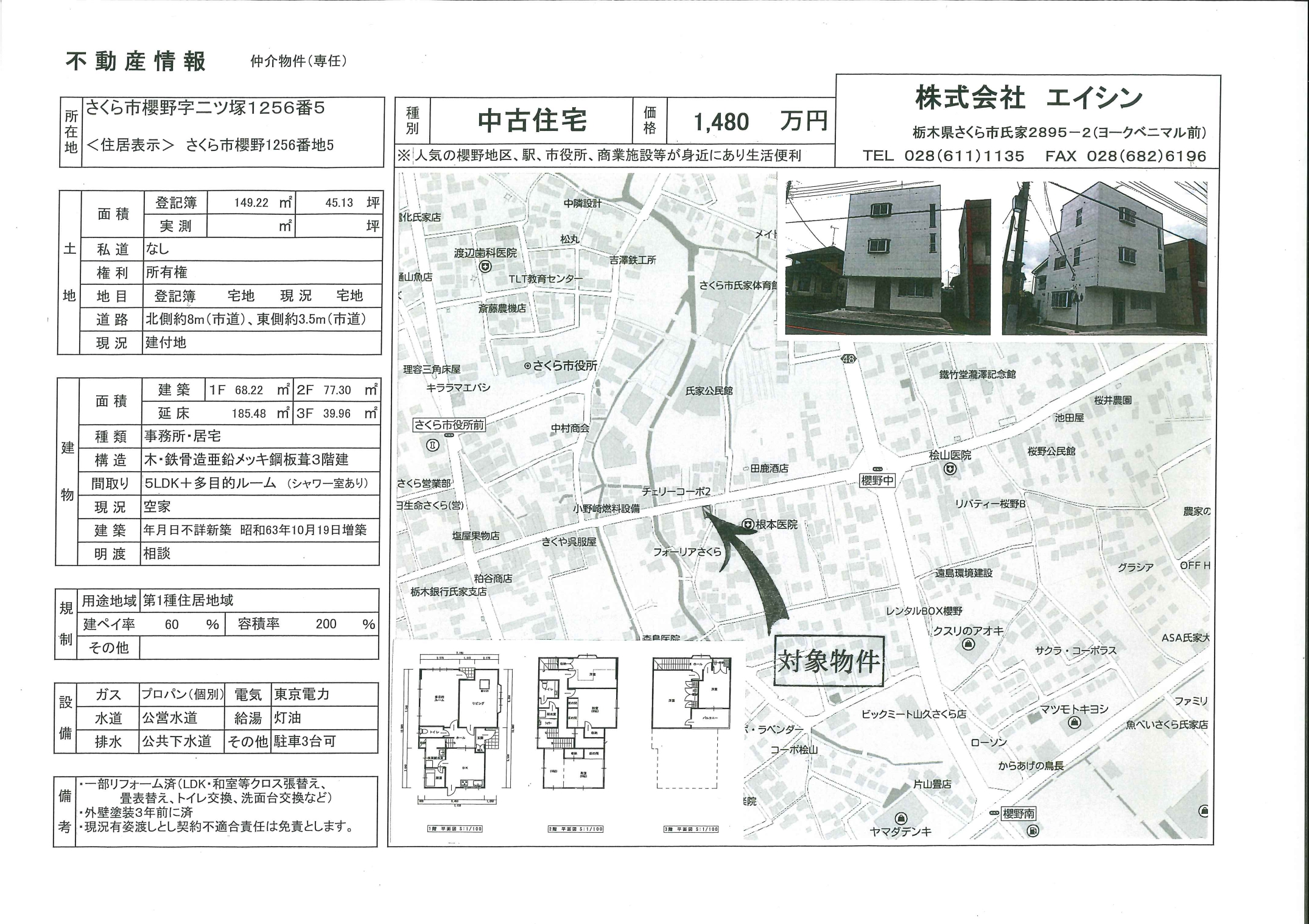 【価格改定】さくら市櫻野 5LDK+事務所 1480万円