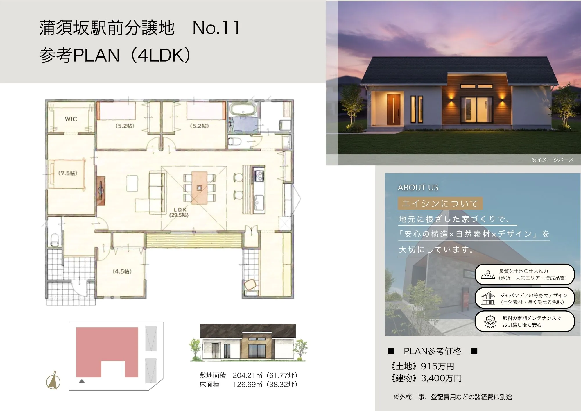 【No.11参考プラン】建物参考価格3400万円、建物面積126.69㎡(38.32坪)