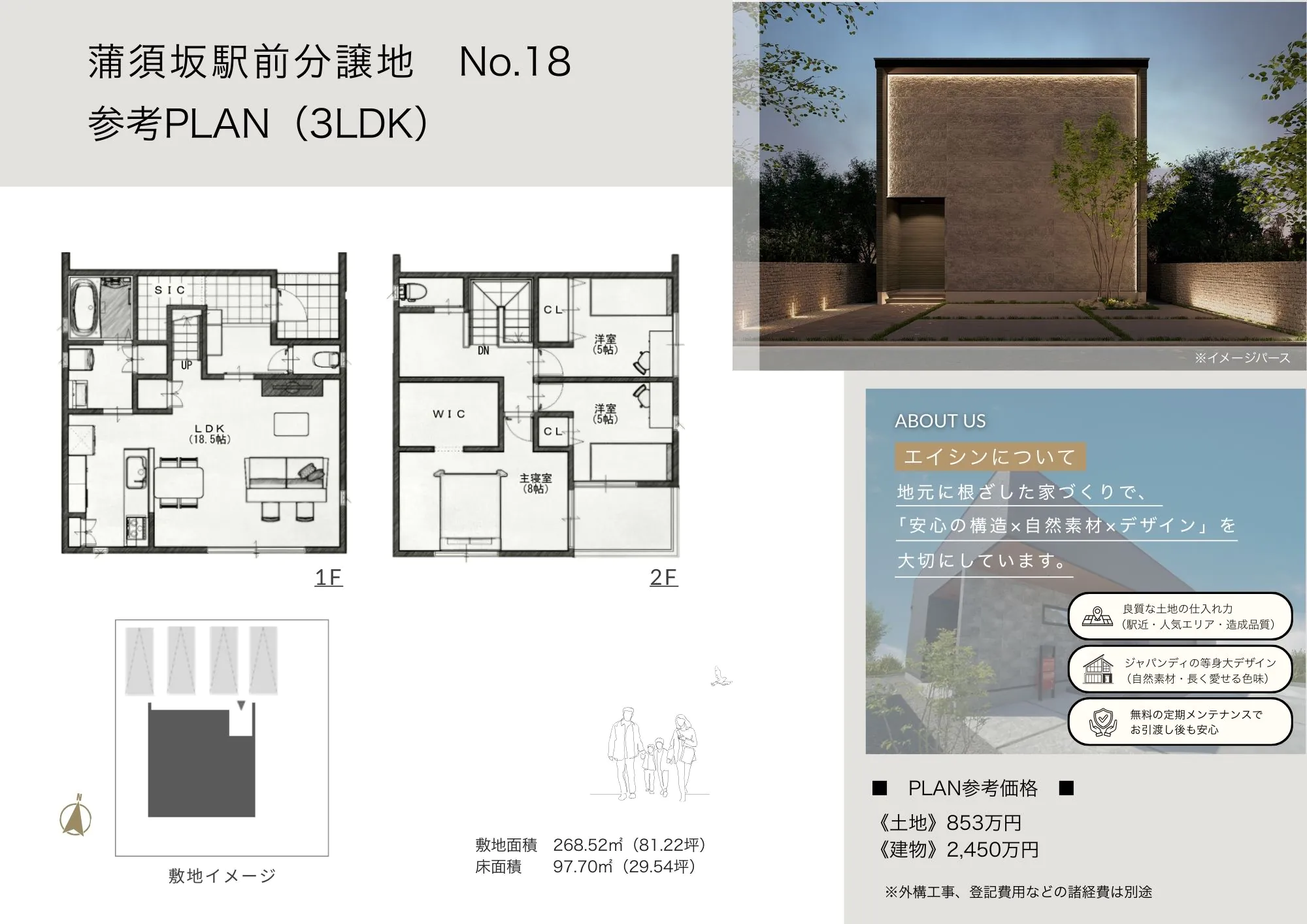 【No.18参考プラン】建物参考価格2450万円、建物面積97.70㎡(29.54坪)