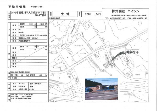 さくら市喜連川 1533.57㎡ 1260万円