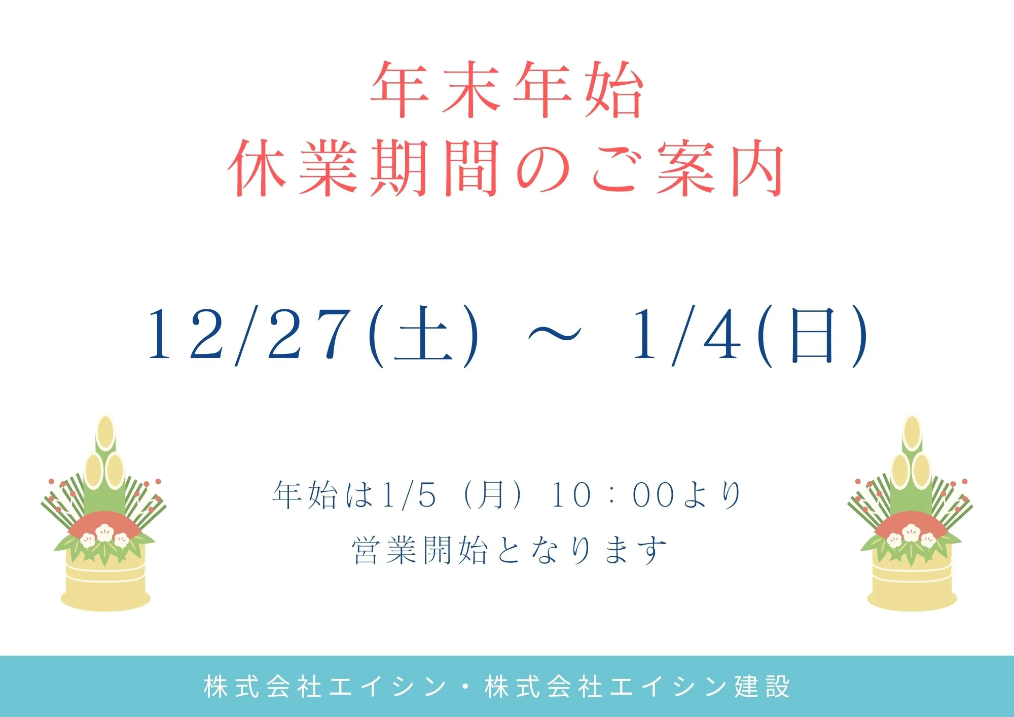《お知らせ》年末年始 休業期間について